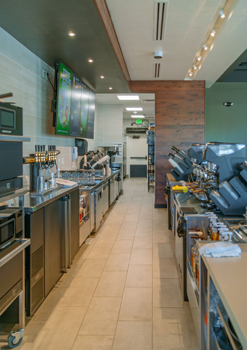 Exterior improvements included site concrete, a drive-thru for efficient service, patio spaces for gathering, and landscaping to enhance the overall environment. Careful coordination of trades and attention to detail ensured a seamless integration of functionality and brand-driven design, resulting in a high-quality space built to serve the community.